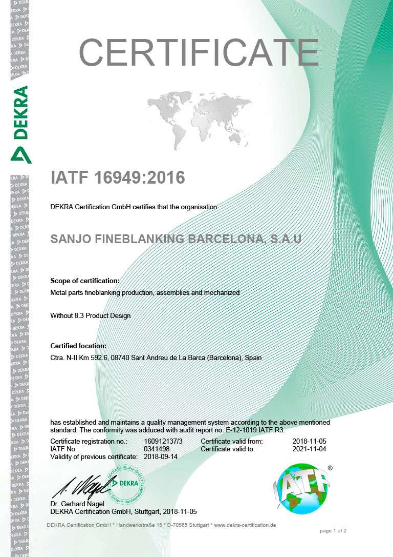 SANJO es una empresa multinacional especializada en tecnologías de precisión y, especialmente, en la estampación de piezas de corte fino. Nos avalan 50 años de historia y un reconocimiento internacional tanto a nuestra experiencia y pasión a la hora de trabajarcomo a la fiabilidad, calidad y capacidad innovadora de nuestros procesos.